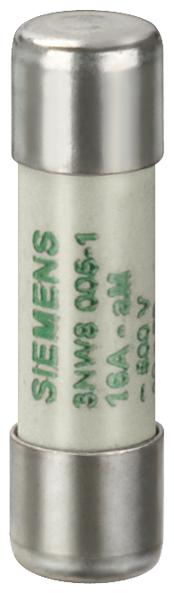 SENTRON, cylindrical fuse link, 14x51 mm, 50 A, aM, Un AC: 400 V SENTRON cylindrical fuse system for selective line protection. Siemens cylindrical fuse-links and fuse holders are suitable for use in industrial plants. They are standard in Europe and are tested and approved as fuse disconnectors, but not for switching under load. For load switching, Siemens offers an extensive portfolio of products, e.g. 3KF. The Siemens cylindrical fuse systems are characterized primarily by: 1. Compliance with the standards IEC 60269-1, -2 and -3. 2. Compliance with the standard UL 512. 3. Fast fuse change due to space for spare fuses in the slide-in unit. 4. Fast detection of a tripped fuse due to LED that flashes when the fuse trips.