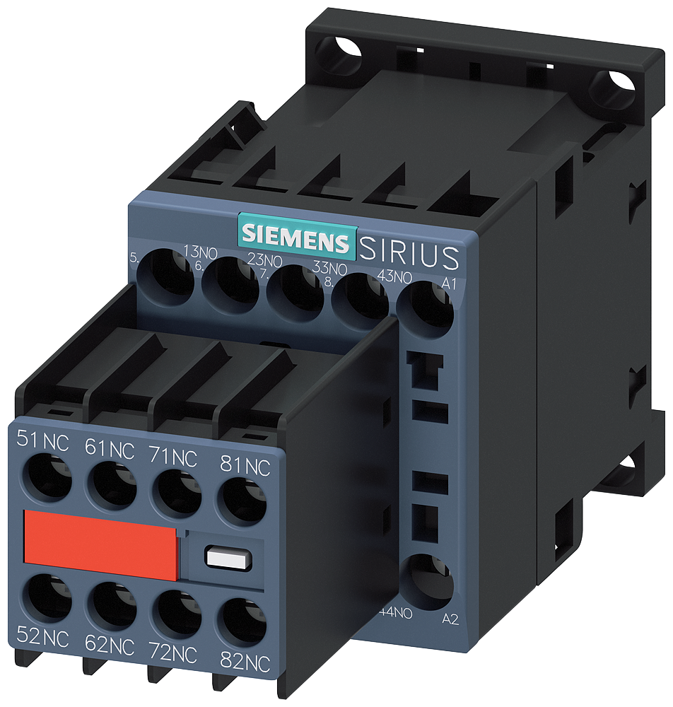 contactor relay, 4 NO + 4 NC, 24 V DC, size S00, spring-loaded terminal, captive auxiliary switch Auxiliary contactor SIRIUS 3RH2 for switching the control signals in the control circuit.The SIRIUS 3RH2 contactor relays have standard-compliant terminal designations and a reliable and time-saving connection technology. Thanks to the multiplication of outputs, simultaneous switching of several auxiliary circuits is possible. All contacts are available with positively driven operation for safety applications as well as SUVA versions. The contactor relays are climate-resistant, have a high contact reliability and are suitable for use worldwide thanks to the corresponding approvals (e.g. IEC and UL/CSA).They are available with AC or DC operation and with screw or spring-loaded terminals. The basic version of the contactor relays is a 4-pole design which can be extended up to 8 poles by means of snap-on auxiliary switches.The extensive range of accessories for the 3RT2 contactors in sizes S00 to S3 can also be used for the 3RH2 contactor relays.The 3RH2 contactor relays replace the well-proven 3RH1 series.Simple, efficient and always up to date - SIRIUS modular system.