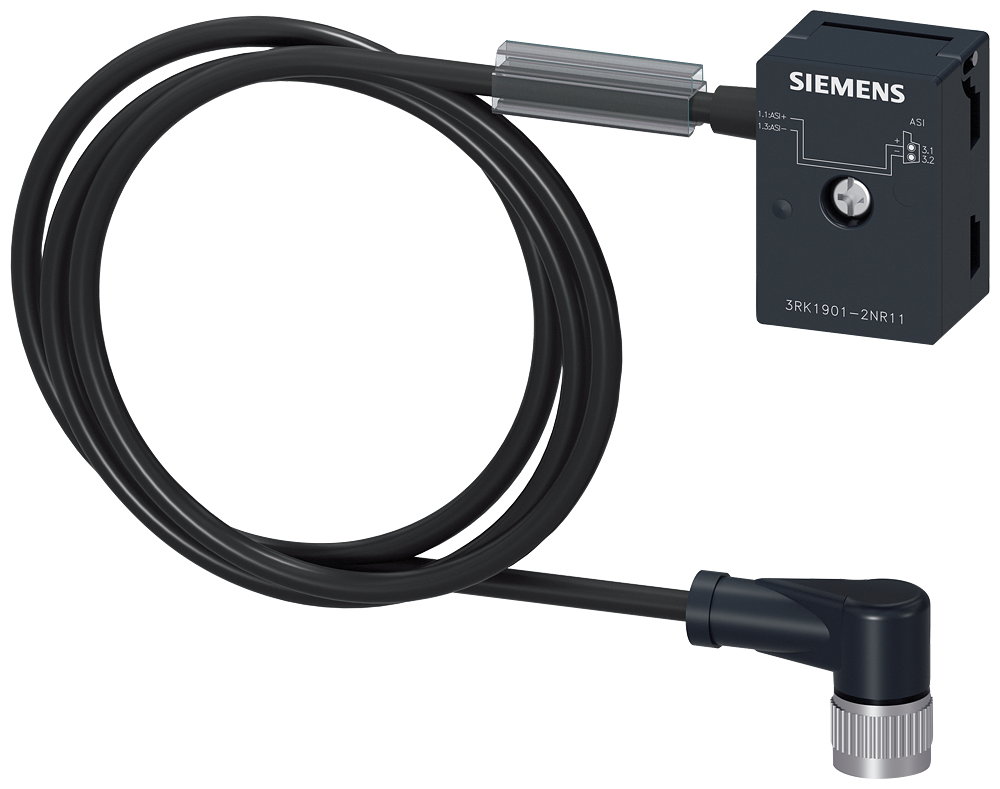 SIEMENS 3RK1901-2NR11 AS-Interface M12 branch U_ASI without Uaux, 1 m, M12 cable socket IP67/68/69K, max. 4 A