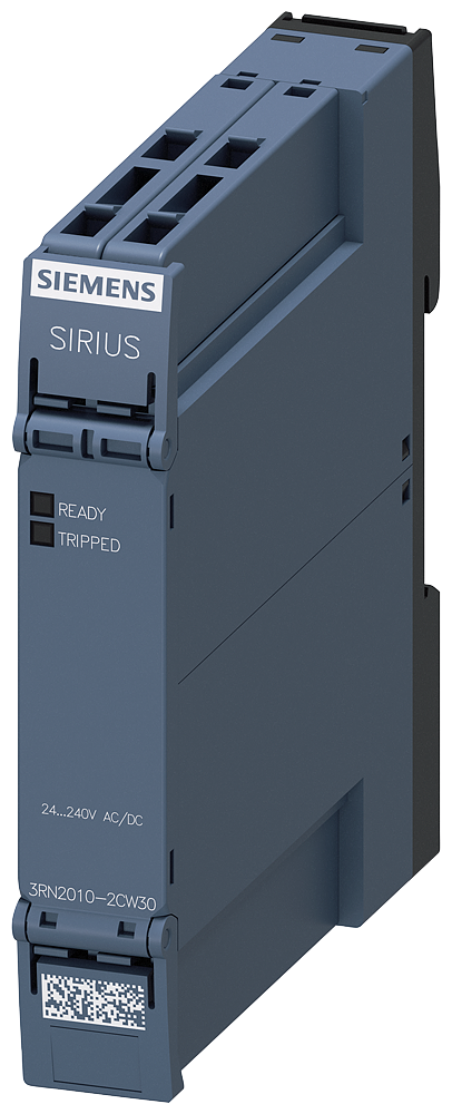 Thermistor motor protection relay Standard evaluation unit 22.5 mm enclosure Spring-type terminal 2 change-over contacts US = 24 V AC/DC Manual/Auto/Remote reset with ATEX approval 2 LEDs (READY/TRIPPED) galvanic isolation Test/reset button Wire break monitoring Short circuit monitoring non-volatile Thermistor motor protection relay SIRIUS 3RN2 for protecting motors against overheating, including in potentially explosive atmospheres, by means of direct temperature measurement with ATEX approval.Direct measurement of the motor winding temperature means that the motor is protected even under abnormal conditions such as heavy starting, braking mode, frequent switching or insufficient cooling, and therefore renders precautionary over-dimensioning of the motor unnecessary. The devices can be used to protect motors in atmospheres where there is a possibility of gas or dust explosions. It is not necessary to set device parameters as PTC sensors are used. LEDs enable fast error diagnostics. The devices are climate-resistant, safe to touch and can be used worldwide thanks to their wide voltage range and international certifications.Available as monostable or bistable evaluation unit, with and without ATEX approval, with one or two sensor circuits as well as auto RESET, manual RESET and/or remote RESET. The devices are available with screw-type or spring-loaded (push-in) terminals. There are versions in widths of 17.5 mm or 22.5 mm, for a TH35 DIN rail or for screw-on fastening with an adapter (accessory) as well as with hard gold plated contacts.Standardized accessories for all device versions, such as detachable terminals, push-in lugs and coding pins, simplify selection and storage.The 3RN2 thermistor motor protection relays replace the proven 3RN1 series.SIRIUS relays - one range for every application.
