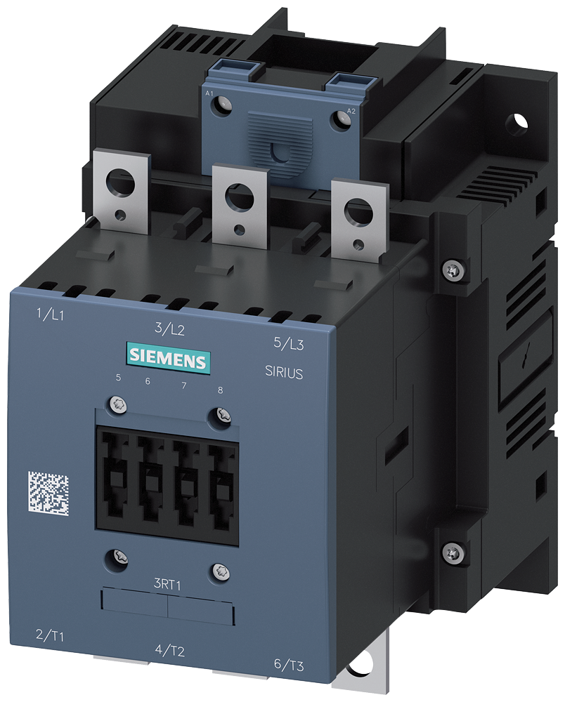 power contactor, AC-3e/AC-3 185 A, 90 kW / 400 V AC (50-60 Hz) / DC Uc: 23-26 V 3-pole, auxiliary contacts 2 NO + 2 NC drive: conventional main circuit: box terminal control and auxiliary circuit: screw terminal box terminal up to 70 mm² Power contactor SIRIUS 3RT1 for switching motors.The 3RT1 contactors are part of the modular SIRIUS system with its optimally coordinated products. They offer convincing performance from a compact design with high contact reliability. They can be combined with a variety of other components in the load feeder. The contactors offer the best connection to the automation level for every application (direct or via PLC input). Pre-installed auxiliary switches reduce the complexity of your design. The 3RT1 contactors are climate-resistant, approved for worldwide use (e.g. IEC and UL/CSA) and are IE3/IE4-ready.They are available in various sizes and in a wide performance range. They can be operated with AC or DC, and some versions have a wide voltage range and a PLC control input. The devices can be connected in the main circuit by means of rails or box terminals. For the auxiliary and control circuit they are also available with spring-type terminals for fast, maintenance-free and vibration-proof connection.Awide range of accessories is available for these contactors, such as wiring kits that considerably reduce wiring outlay, auxiliary switches or terminal covers.Simple, efficient and always up to date - SIRIUS modular system.