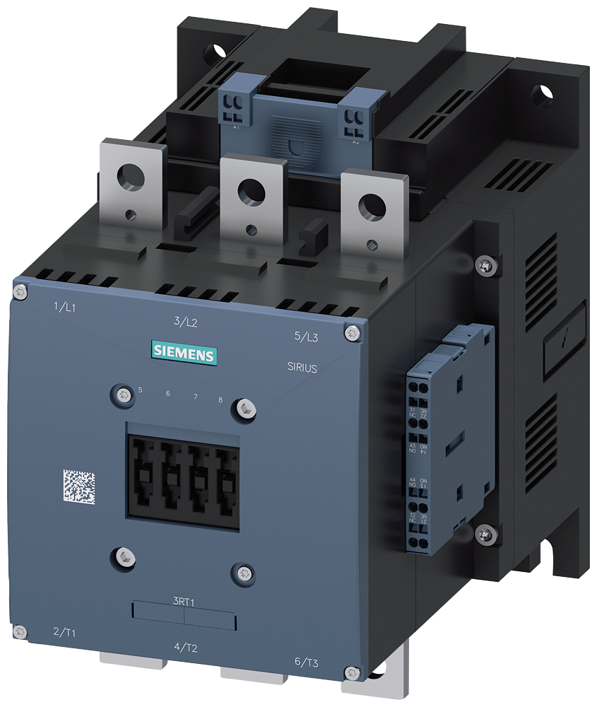 vacuum contactor AC-3e/AC-3 265 A, 132 kW / 400 V, 3-pole, Uc: 110-127 V AC(50-60 Hz) / DC drive: conventional auxiliary contacts 2 NO + 2 NC main circuit: busbar control and auxiliary circuit: screw terminal Vacuum contactor SIRIUS 3RT12 for switching motors.The 3RT12 vacuum contactors are part of the modular SIRIUS system with its optimally coordinated products. They offer convincing performance and high contact reliability despite their compact design. The vacuum contactors are also characterized by their particularly high switching endurance. They are therefore particularly well suited to frequent switching in jog mode. They can be combined with a variety of other components in the load feeder. The contactors offer the best connection to the automation level for every application (direct or via PLC input). Pre-installed auxiliary switches reduce the complexity of your design. The 3RT1 contactors are climate-resistant, approved for worldwide use (e.g. IEC and UL/CSA) and are IE3/IE4-ready.They are available in various sizes and in a wide performance range. They have a DC wide voltage range and a PLC control input. The devices can be connected in the main circuit by means of rails or box terminals. For the auxiliary and control circuit they are also available with spring-loaded terminals for fast, maintenance-free and vibration-proof connection.A wide range of accessories is available for these contactors, such as wiring kits that considerably reduce wiring outlay, auxiliary switches or terminal covers.Simple, efficient and always up to date - SIRIUS modular system.