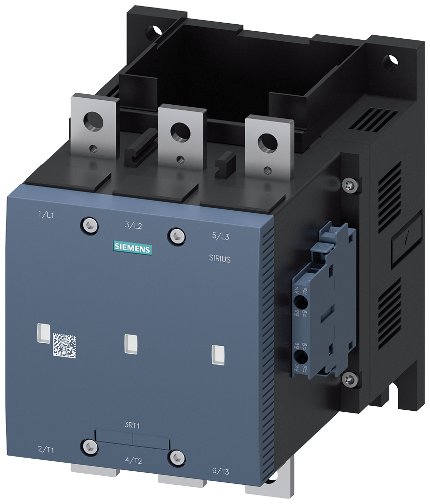 vacuum contactor AC-3e/AC-3 500 A, 250 kW / 400 V, 3-pole, Uc: 380-420 V AC(50-60 Hz) / DC drive: conventional auxiliary contacts 2 NO + 2 NC main circuit: busbar control and auxiliary circuit: screw terminal Vacuum contactor SIRIUS 3RT12 for switching motors.The 3RT12 vacuum contactors are part of the modular SIRIUS system with its optimally coordinated products. They offer convincing performance and high contact reliability despite their compact design. The vacuum contactors are also characterized by their particularly high switching endurance. They are therefore particularly well suited to frequent switching in jog mode. They can be combined with a variety of other components in the load feeder. The contactors offer the best connection to the automation level for every application (direct or via PLC input). Pre-installed auxiliary switches reduce the complexity of your design. The 3RT1 contactors are climate-resistant, approved for worldwide use (e.g. IEC and UL/CSA) and are IE3/IE4-ready.They are available in various sizes and in a wide performance range. They have a DC wide voltage range and a PLC control input. The devices can be connected in the main circuit by means of rails or box terminals. For the auxiliary and control circuit they are also available with spring-loaded terminals for fast, maintenance-free and vibration-proof connection.A wide range of accessories is available for these contactors, such as wiring kits that considerably reduce wiring outlay, auxiliary switches or terminal covers.Simple, efficient and always up to date - SIRIUS modular system.