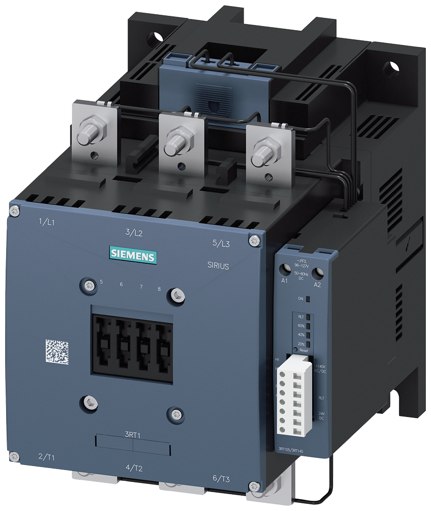 power contactor AC-1 400 A / 690 V / 40 °C 3-pole, Uc: 220-240 V AC(50-60 Hz) / DC drive: conventional auxiliary contacts 2 NO + 2 NC main circuit: busbar control and auxiliary circuit: screw terminal Contactor SIRIUS 3RT14 for switching resistive loads.The 3RT1 contactors are part of the modular SIRIUS system with its optimally coordinated products. They offer convincing performance from a compact design with high contact reliability. They can be combined with a variety of other components in the load feeder. The contactors offer the best connection to the automation level for every application (direct or via PLC input). Pre-installed auxiliary switches reduce the complexity of your design. 3RT1 contactors are climate-resistant and approved for worldwide use (e.g. IEC and UL/CSA).They are available in various sizes and in a wide performance range. They can be operated with AC or DC, and some versions have a wide voltage range and a PLC control input. The devices can be connected in the main circuit by means of rails or box terminals. For the auxiliary and control circuit they are also available with spring-type terminals for fast, maintenance-free and vibration-proof connection.A wide range of accessories is available for these contactors, such as wiring kits that considerably reduce wiring outlay, auxiliary switches or terminal covers.Simple, efficient and always up to date - SIRIUS modular system.