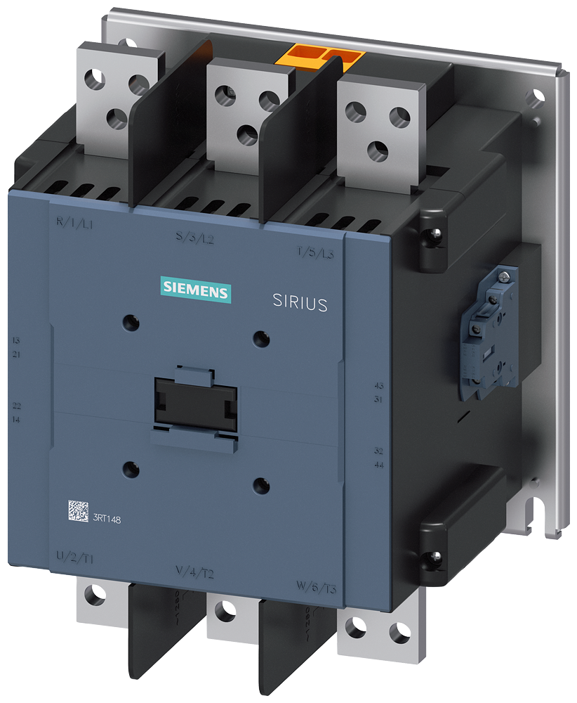 power contactor AC-1 275 A / 690 V / 40 °C 3-pole, Uc: 23-26 V AC(50-60 Hz) / DC drive: conventional auxiliary contacts 2 NO + 2 NC main circuit: busbar control and auxiliary circuit: screw terminal Contactor SIRIUS 3RT14 for switching resistive loads.The 3RT1 contactors are part of the modular SIRIUS system with its optimally coordinated products. They offer convincing performance from a compact design with high contact reliability. They can be combined with a variety of other components in the load feeder. The contactors offer the best connection to the automation level for every application (direct or via PLC input). Pre-installed auxiliary switches reduce the complexity of your design. 3RT1 contactors are climate-resistant and approved for worldwide use (e.g. IEC and UL/CSA).They are available in various sizes and in a wide performance range. They can be operated with AC or DC, and some versions have a wide voltage range and a PLC control input. The devices can be connected in the main circuit by means of rails or box terminals. For the auxiliary and control circuit they are also available with spring-type terminals for fast, maintenance-free and vibration-proof connection.A wide range of accessories is available for these contactors, such as wiring kits that considerably reduce wiring outlay, auxiliary switches or terminal covers.Simple, efficient and always up to date - SIRIUS modular system.