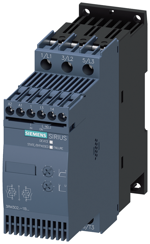 SIRIUS soft starter S2 72 A, 37 kW/400 V, 40 °C 200-480 V AC, 24 V AC/DC Screw terminals Soft starter SIRIUS 3RW30 for standard applications for the soft starting of three-phase asynchronous motors.Soft starting, reduction of current peaks, prevention of supply voltage fluctuations during startup, reduction of load on the power supply network, reduction of mechanical load in the drive, considerable saving of space and wiring compared to star-delta (wye-delta) starters and frequency converters, maintenance-free switching and extremely easy handling. The integrated bypass allows a very compactconstruction and ensures low heat dissipation in the control cabinet. Worldwide approvals (e.g. IEC and UL/CSA).The 3RW soft starters are available for supply systems up to 690 V in a wide performance range with different control supply voltages and all with both screw and spring-loaded terminals. For the 3RW30/40 there are additional versions with 24 V control supply voltage. Some of the 3RW40 up to size S3, and all 3RW44 units also offer thermistor motor protection.With the optional link module, the soft starters can be attached to the circuit breakers, even for the versions with spring-loaded terminals.Simple, efficient and always up to date - SIRIUS modular system.