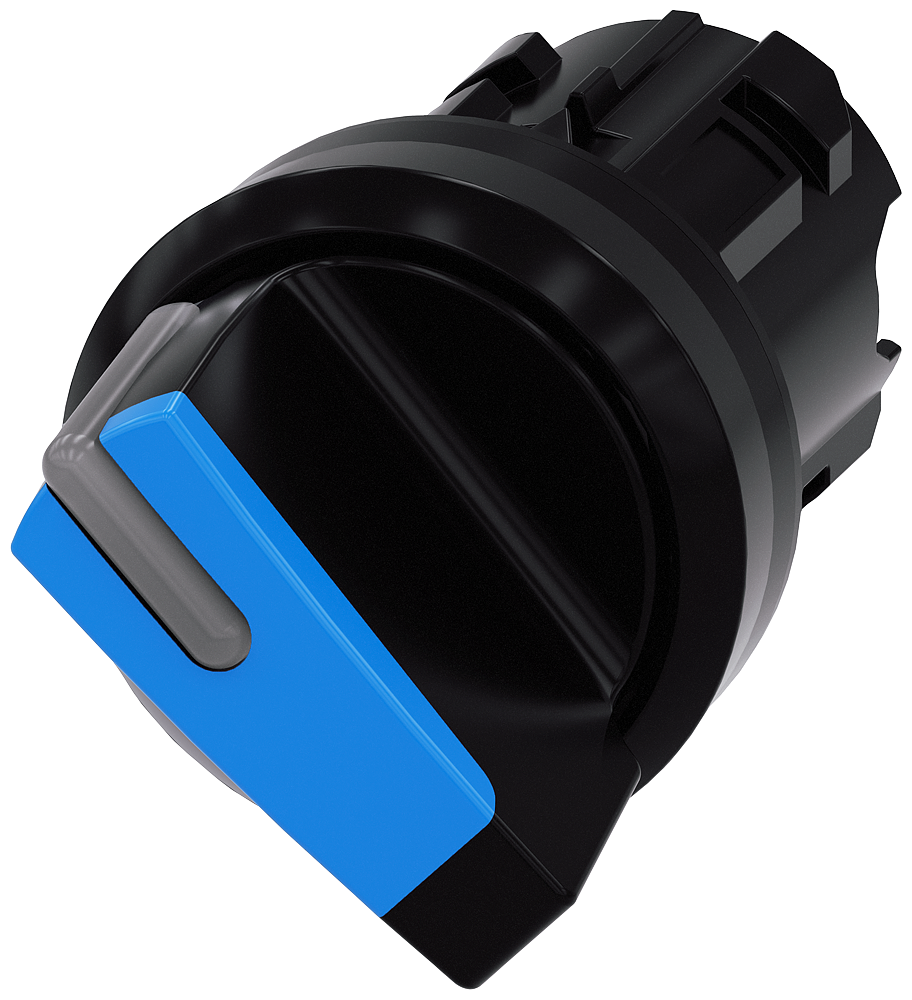 Illuminable selector switch, 22 mm, round, plastic, black, Selector switch short, 3 switch positions I-O-II, latching, actuating angle 2x45?, 10:30h/12h/13:30h Selector switches SIRIUS ACT for switching and controlling electrical loads.Under the brand name SIRIUS ACT, Siemens offers a unique portfolio of pushbuttons and signaling devices with global product approvals in three modern design lines of rugged genuine metal and high-grade plastic.An innovative snap-on concept makes the task of installing a unit so easy that it can be done with one hand and without any special tools. Groove-free holes are adequate as mounting holes since full twist prevention is already integrated.Thanks to the high degree of protection throughout, the rugged devices are suitable for use in industry and outdoors. Even cleaning with a high-pressure jet is possible. Neither dust, oils, nor caustic solutions can interfere with reliable operation.As well as standard wiring, the devices can also be connected to the controller via PROFINET, AS-Interface or IO-Link. Doing so will help you to reduce wiring time and effort, minimize error sources and have more flexibility.The graphical Online Configurator provides convenient support when selecting and ordering individual devices, enclosures and labels. Extensive documentation (e.g. manual, 3D data, terminal diagram) is available.Versions available: Several colors, 2-4 switching positions, short/long selector or rotary knob, illuminated/non-illuminated (lighting can also be retrofitted), latching/momentary contact operation.Note: Single device, please order holders and modules separately.SIRIUS ACT - Performance in action for controland signalling. Simply mounted, simply strong, simply perfect.