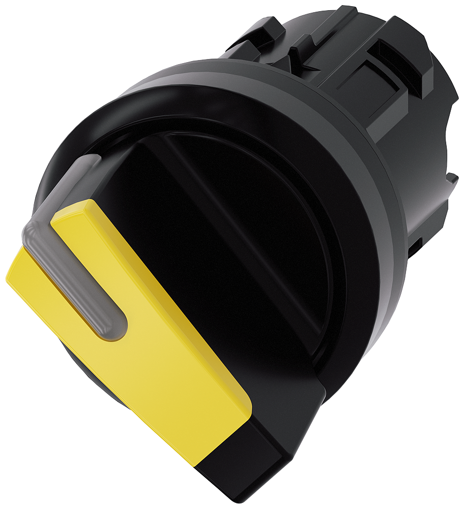 Selector switch, illuminable, 22 mm, round, plastic, blue, selector switch, short, 3 switch positions I-O-II, latching, actuating angle 2x45?, 10:30h/12h/13:30h Selector switches SIRIUS ACT for switching and controlling electrical loads.Under the brand name SIRIUS ACT, Siemens offers a unique portfolio of pushbuttons and signaling devices with global product approvals in three modern design lines of rugged genuine metal and high-grade plastic.An innovative snap-on concept makes the task of installing a unit so easy that it can be done with one hand and without any special tools. Groove-free holes are adequate as mounting holes since full twist prevention is already integrated.Thanks to the high degree of protection throughout, the rugged devices are suitable for use in industry and outdoors. Even cleaning with a high-pressure jet is possible. Neither dust, oils, nor caustic solutions can interfere with reliable operation.As well as standard wiring, the devices can also be connected to the controller via PROFINET, AS-Interface or IO-Link. Doing so will help you to reduce wiring time and effort, minimize error sources and have more flexibility.The graphical Online Configurator provides convenient support when selecting and ordering individual devices, enclosures and labels. Extensive documentation (e.g. manual, 3D data, terminal diagram) is available.Versions available: Several colors, 2-4 switching positions, short/long selector or rotary knob, illuminated/non-illuminated (lighting can also be retrofitted), latching/momentary contact operation.Note: Single device, please order holders and modules separately.SIRIUS ACT - Performance in action for controland signalling. Simply mounted, simply strong, simply perfect.