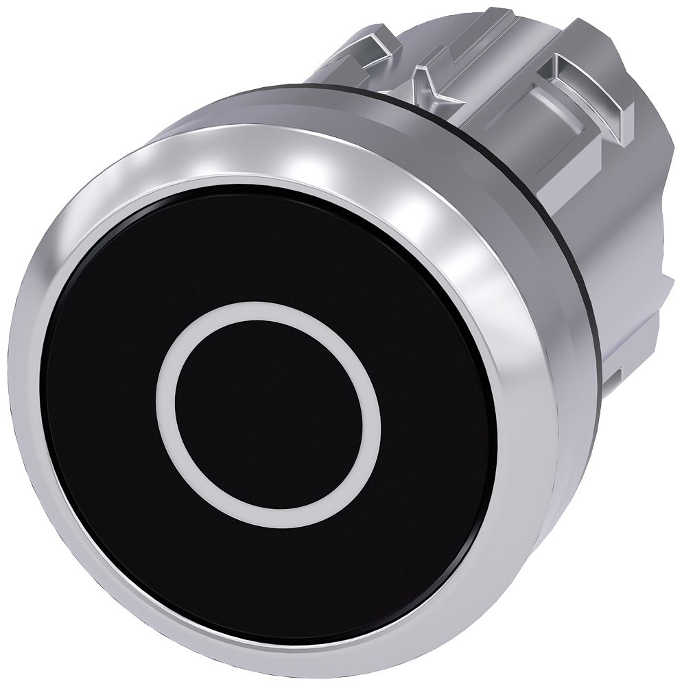 Pushbutton, 22 mm, round, metal, high gloss, black, labeling: O, button
