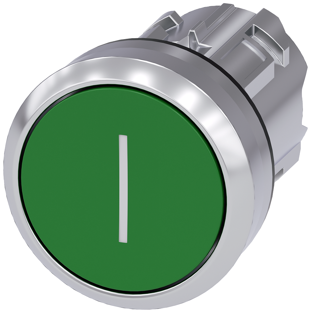 Pushbutton, 22 mm, round, metal, shiny, black, pushbutton, raised momentary contact type Pushbuttons SIRIUS ACT for switching and controlling electrical loads.Under the brand name SIRIUS ACT, Siemens offers a unique portfolio of pushbuttons and signaling devices with global product approvals in three modern design lines of rugged genuine metal and high-grade plastic.An innovative snap-on concept makes the task of installing a unit so easy that it can be done with one hand and without any special tools. Groove-free holes are adequate as mounting holes since full twist prevention is already integrated.Thanks to the high degree of protection throughout, the rugged devices are suitable for use in industry and outdoors. Even cleaning with a high-pressure jet is possible. Neither dust, oils, nor caustic solutions can interfere with reliable operation.As well as standard wiring, the devices can also be connected to the controller via PROFINET, AS-Interface or IO-Link. Doing so will help you to reduce wiring time and effort, minimize error sources and have more flexibility.The graphical OnlineConfigurator provides convenient support when selecting and ordering individual devices, enclosures and labels. Extensive documentation (e.g. manual, 3D data, terminal diagram) is available.Versions available: Several colors, illuminated/non-illuminated, with/without inscription, latching/momentary contact operation, various button and front ring heights.Note: Single device, please order holders and modules separately.SIRIUS ACT - Performance in action for control and signalling. Simply mounted, simply strong, simply perfect.