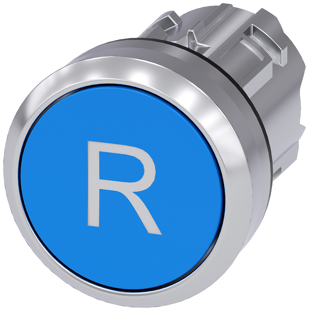 Pushbutton, 22 mm, round, metal, high gloss, blue, labeling: R, button