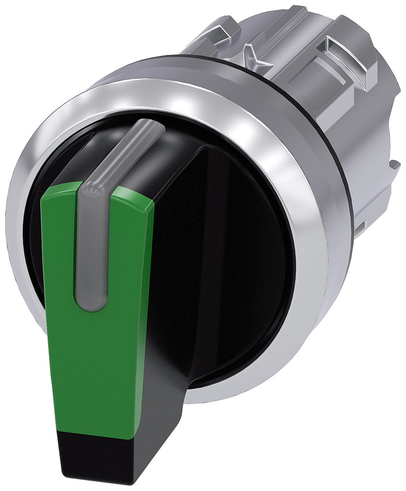 SIEMENS 3SU1052-2BP40-0AA0 Toggle switch, illuminable, 22 mm, round, metal, high gloss, green, knob, short