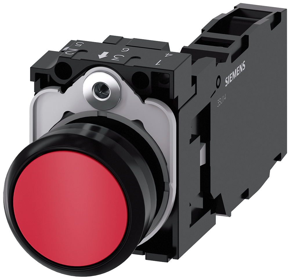 Pushbutton, 22 mm, round, plastic, green, pushbutton, flat, momentary contact type, with holder 1 NO, screw terminal Pushbuttons SIRIUS ACT for switching and controlling electrical loads.Under the brand name SIRIUS ACT, Siemens offers a unique portfolio of pushbuttons and signaling devices with global product approvals in three modern design lines of rugged genuine metal and high-grade plastic.An innovative snap-on concept makes the task of installing a unit so easy that it can be done with one hand and without any special tools. Groove-free holes are adequate as mounting holes since full twist prevention is already integrated.Thanks to the high degree of protection throughout, the rugged devices are suitable for use in industry and outdoors. Even cleaning with a high-pressure jet is possible. Neither dust, oils, nor caustic solutions can interfere with reliable operation.As well as standard wiring, the devices can also be connected to the controller via PROFINET, AS-Interface or IO-Link. Doing so will help you to reduce wiring time and effort, minimize error sources and have more flexibility.The graphical OnlineConfigurator provides convenient support when selecting and ordering individual devices, enclosures and labels. Extensive documentation (e.g. manual, 3D data, terminal diagram) is available.Versions available: Several colors, illuminated/non-illuminated, with/without inscription, latching/momentary contact operation, various button and front ring heights.Note: Complete unit, delivery includes holders and modules.SIRIUS ACT - Performance in action for control and signalling. Simply mounted, simply strong, simply perfect.