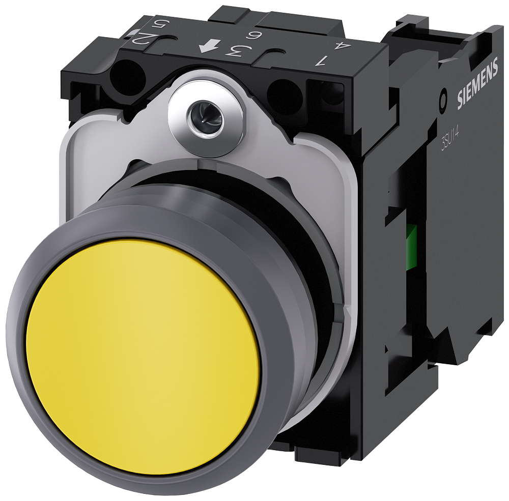 Illuminated pushbutton, 22 mm, round, plastic with metal front ring, red, pushbutton, flat, momentary contact type, with holder, 1 NC, LED module with integrated LED 24 V AC/DC, screw terminal Illuminated pushbuttons SIRIUS ACT for switching and controlling electrical loads.Under the brand name SIRIUS ACT, Siemens offers a unique portfolio of pushbuttons and signaling devices with global product approvals in three modern design lines of rugged genuine metal and high-grade plastic.An innovative snap-on concept makes the task of installing a unit so easy that it can be done with one hand and without any special tools. Groove-free holes are adequate as mounting holes since full twist preventionis already integrated.Thanks to the high degree of protection throughout, the rugged devices are suitable for use in industry and outdoors. Even cleaning with a high-pressure jet is possible. Neither dust, oils, nor caustic solutions can interfere with reliable operation.As well as standard wiring, the devices can also be connected to the controller via PROFINET, AS-Interface or IO-Link. Doing so will help you to reduce wiring time and effort, minimize error sources and have more flexibility.The graphical Online Configurator provides convenient support when selecting and ordering individual devices, enclosures and labels. Extensive documentation (e.g. manual, 3D data, terminal diagram) is available.Versions available: Several colors, illuminated/non-illuminated, with/without inscription, latching/momentary contact operation, various button and front ring heights.Note: Complete unit, delivery includes holders and modules.SIRIUS ACT - Performance in action for control and signalling. Simply mounted, simply strong, simply perfect.