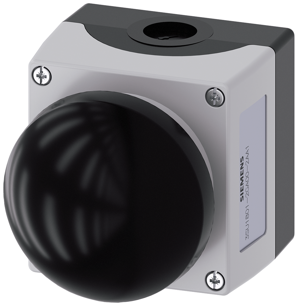 Enclosure for command devices, 22 mm, round, enclosure material plastic, enclosure top part gray, 3 control points plastic, recess for labels, customer-specific equipment, spring-loaded terminal, floor mounting, G?pfert no. 428643 on rating plate Labels glued in Enclosures SIRIUS ACT for mounting the 22.5?mm pushbuttons and indicator lights for separately allocated control units and cabinets.Under the brand name SIRIUS ACT, Siemens offers a unique portfolio of pushbuttons and signaling devices with global product approvals in three modern design lines of rugged genuine metal and high-grade plastic.An innovative snap-on concept makes the task of installing a unit so easy that it can be done with one hand and without any special tools. Groove-free holes are adequate as mounting holes since full twist prevention is already integrated.Thanks to the high degree of protection throughout, the rugged devices are suitable for use in industry and outdoors. Even cleaning with a high-pressure jet is possible. Neither dust, oils, nor caustic solutions can interfere with reliable operation.As well as standard wiring, the devices can also be connected to the controller via PROFINET, AS-Interface or IO-Link. Doing so will help you to reduce wiring time and effort, minimize error sources and have more flexibility.The graphical Online Configurator provides convenient support when selecting and ordering individual devices, enclosures and labels. Extensive documentation (e.g. manual, 3D data, terminal diagram) is available.Versions available: Yellow/gray, plastic/metal, 1-6 command points, empty enclosure/pre-equipped, optionally with AS-Interface connection.SIRIUS ACT - Performance in action for control and signalling. Simply mounted, simply strong, simply perfect.