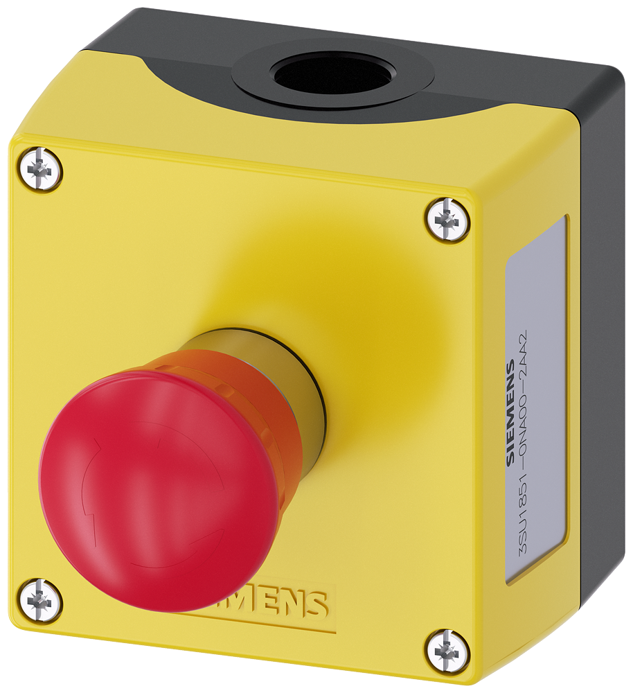 Enclosure for command devices, 22 mm, round, Enclosure material metal, enclosure top part gray, 2 control points metal, B=Pushbutton green, label: I, 1 NO, screw terminal, A=Pushbutton red, label: O, 1 NC, screw terminal, floor mounting, 1xM20 each on top and bottom, Labels enclosed Enclosures SIRIUS ACT for mounting the 22.5?mm pushbuttons and indicator lights for separately allocated control units and cabinets.Under the brand name SIRIUS ACT, Siemens offers a unique portfolio of pushbuttons and signaling devices with global product approvals in three modern design lines of rugged genuine metal and high-grade plastic.An innovative snap-on concept makes the task of installing a unit so easy that it can be done with one hand and without any special tools. Groove-free holes are adequate as mounting holes since full twist prevention is already integrated.Thanks to the high degree of protection throughout, the rugged devices are suitable for use in industry and outdoors. Even cleaning with a high-pressure jet is possible. Neither dust, oils, nor caustic solutions can interfere with reliable operation.As well as standard wiring, the devices can also be connected to the controller via PROFINET, AS-Interface or IO-Link. Doing so will help you to reduce wiring time and effort, minimize error sources and have more flexibility.The graphical Online Configurator provides convenient support when selecting and ordering individual devices, enclosures and labels. Extensive documentation (e.g. manual, 3D data, terminal diagram) is available.Versions available: Yellow/gray, plastic/metal, 1-6 command points, empty enclosure/pre-equipped, optionally with AS-Interface connection.SIRIUS ACT - Performance in action for control and signalling. Simply mounted, simply strong, simply perfect.