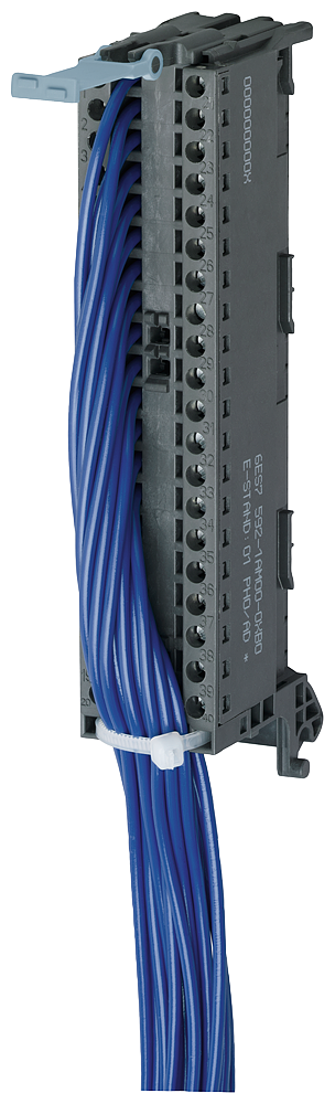 Front connector for SIMATIC S7-1500 40 pole (6ES7592-1AM00-0XB0) with 40 single cores 0.5 mm2 Core type H05V-K Screw version L = 10.0 m The pre-assembled 40-pole front connector with 40 single wires of type H05V-K, conductor cross-section 0.5qmm, with a length of 10.0m in screw version is intended for connection to a digital I/O module of the SIMATIC S7-1500. This is plugged onto the module to be wired instead of the front connector. This allows the signals of the digital I/O module to be easily connected to the elements to be wired via the numbered individual wires.This front connector with single wires is part of the flexible connection of SIMATIC TOP connect for the fastest and safest system cabling. In addition to a 50% lower wiring effort, sources of errors in cabling can be significantly reduced.