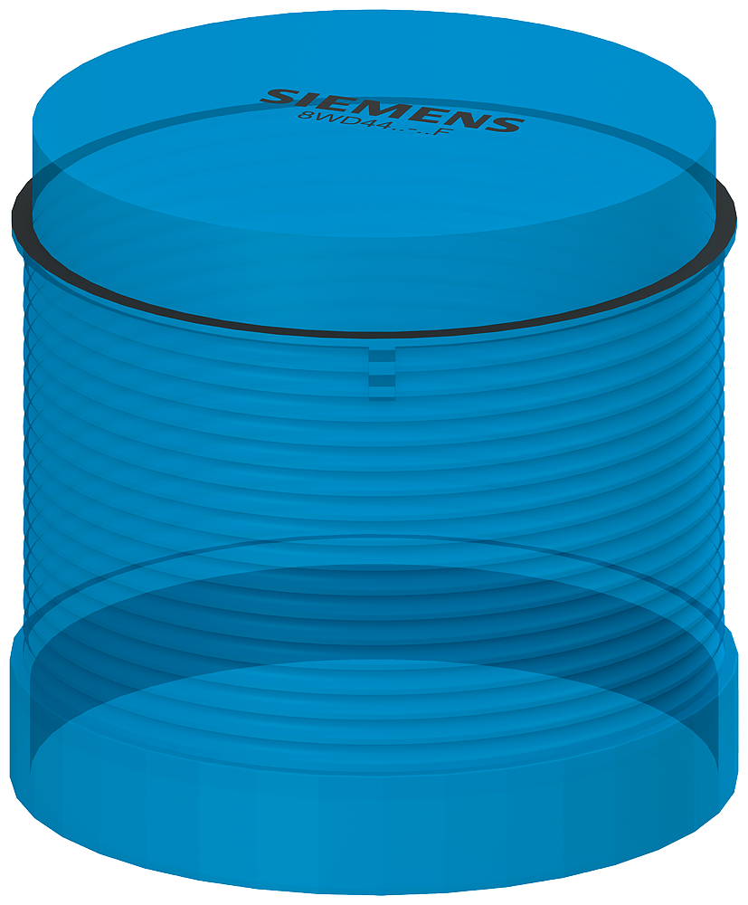 Continuous light element, with integrated LED, blue, 24 V AC/DC, Diameter 70 mm Continuous light element SIRIUS 8WD4 including light sources for modular installation of signaling columns, e.g. for visual and/or acoustic warning devices or for the control of complex processes.Thanks to the high degree of protection, the rugged devices are suitable for industrial use and are extremely resistant to shocks and vibrations. The secure bayonet mechanism allows easy installation as well as quick replacement of the light elements.In addition to a continuous light, flashlights, blinklights and rotating lights in various colors and voltages are available, as well as buzzers and sirens. They can be supplied with various diameters, optionally also with communication capability through connection to AS-Interface Optimum light distribution is achieved by using several LEDs in one light module.Feet, pipes, brackets, incandescent lamps, LEDs and pipe adapters are available as accessories.SIRIUS 8WD signaling columns - Modular and communication-capable with modern design.